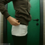 This feisty little slut uses her break to duck into a bathroom and stuff herself. With pants that tight, no one will will suspect a thing…