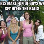 GIRLS MAKE FUN OF GUYS WHO GET HIT IN THE BALLS.